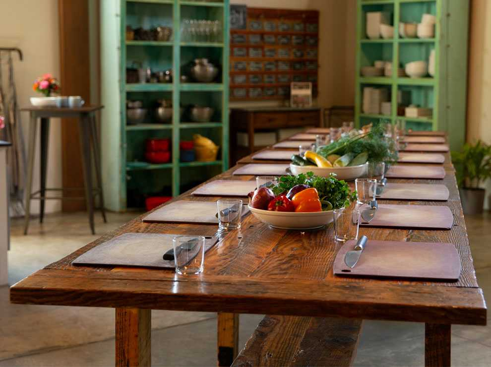 - Classes culminate in a family style meal around our barn wood tables towards the end of class.